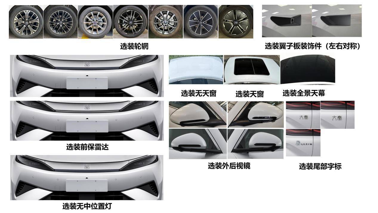 此外,新车的车身长宽高分别为4866/1880/1495mm,轴距为2820mm,相比秦L更长了一些。同时新车提供多款轮毂造型可选,且尾标提供有“大秦”和“秦Ultra”可选。