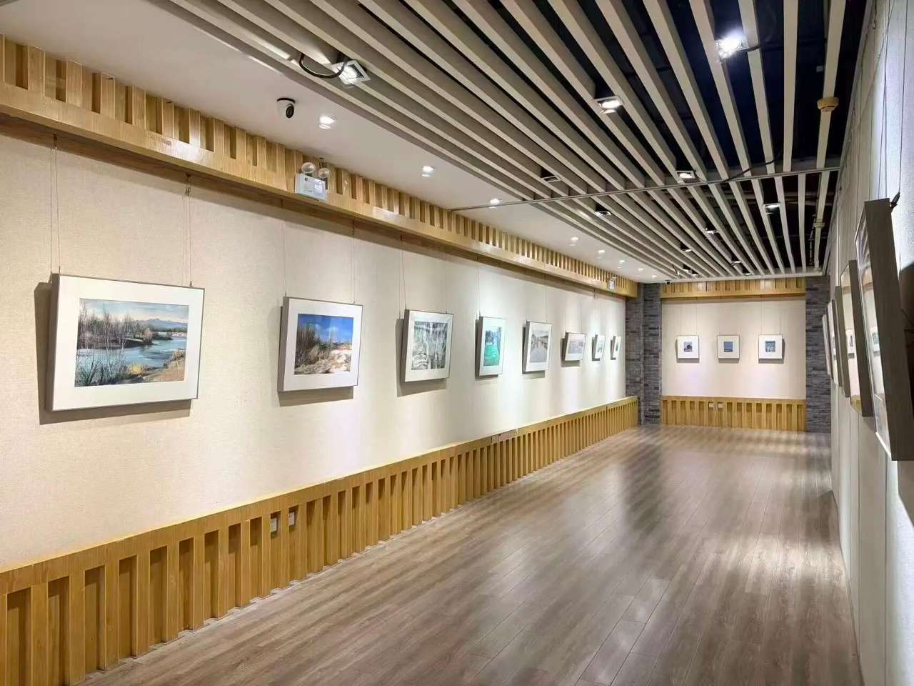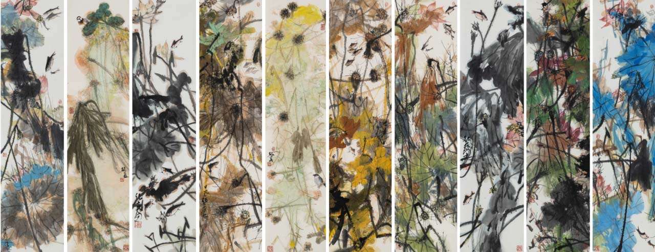 漫步展厅,一件件作品述说着创作者的求索之路与耕耘足迹。“速写筑基”板块聚焦张森在中央工艺美术学院的求学时光,集中展出艺术家创作的风景速写。“插图拾遗”板块遴选艺术家创作的部分插图约稿作品,展现了其对于文本内容的精准解读能力。“彩墨本色”板块重磅呈现张森的代表作《荷鱼十屏》,作品以灵动的笔墨、鲜活的色彩构建出生动的意境,既是艺术家对传统花鸟题材的当代诠释,也集中体现了其在彩墨语言上的成熟造诣。“自然心象”板块则展出艺术家的风景新作,完整呈现了其对自然景致“抓取—提炼—创造”的过程。